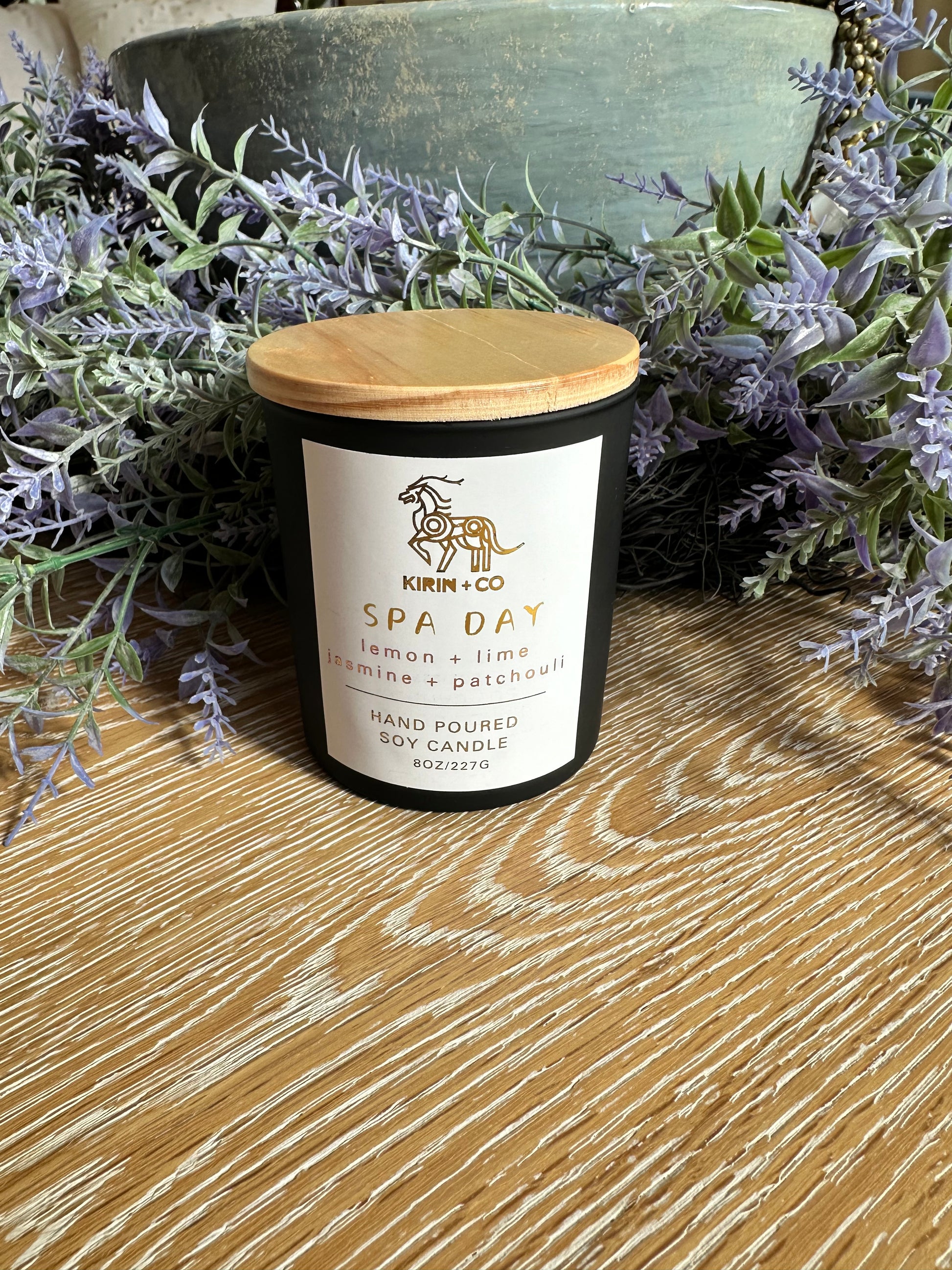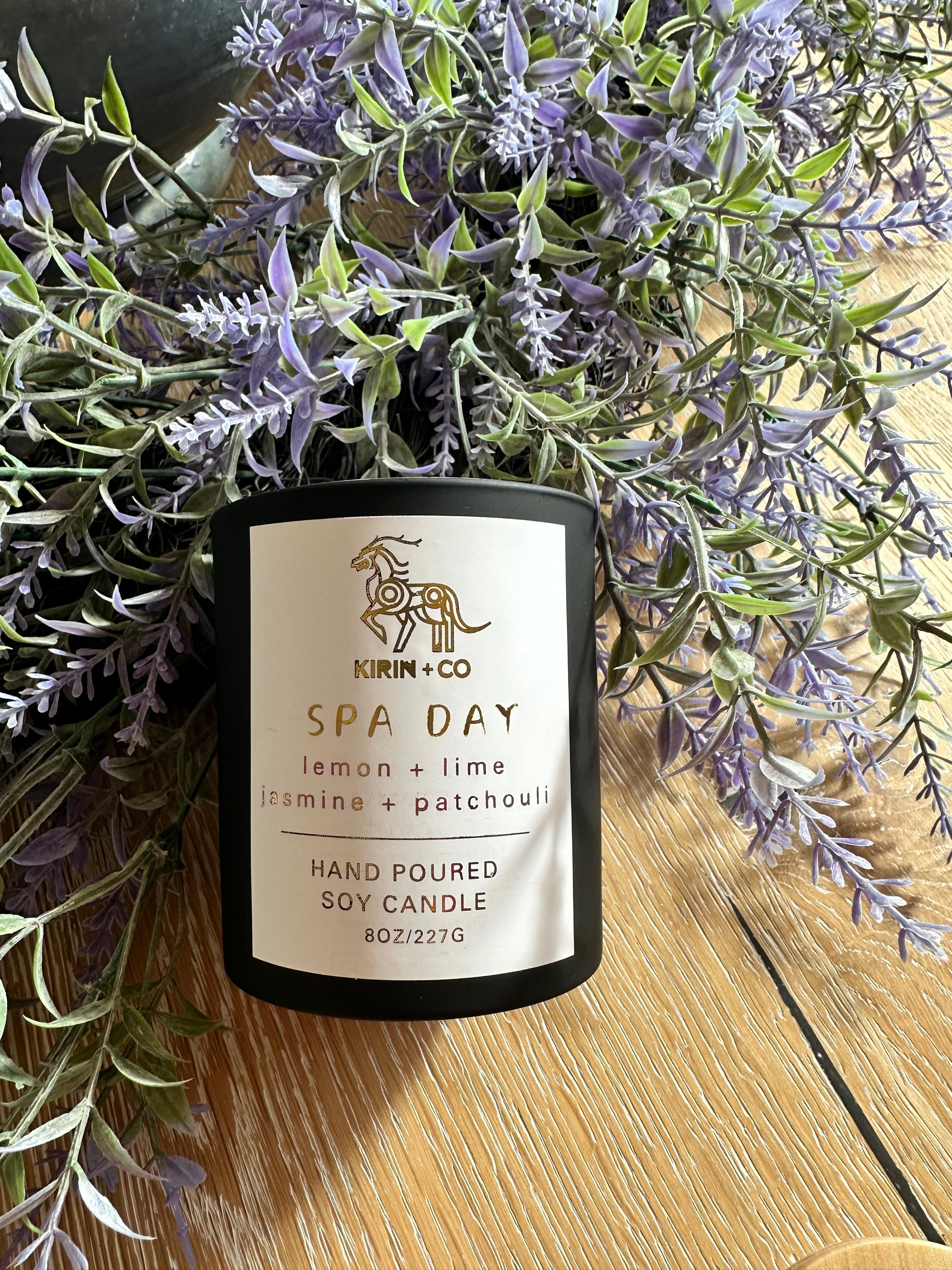 Spa Day soy candle is just what it sounds like. Start a bath, get those bubbles going and light the blended scents of lemon, lime, jasmine and patchouli.